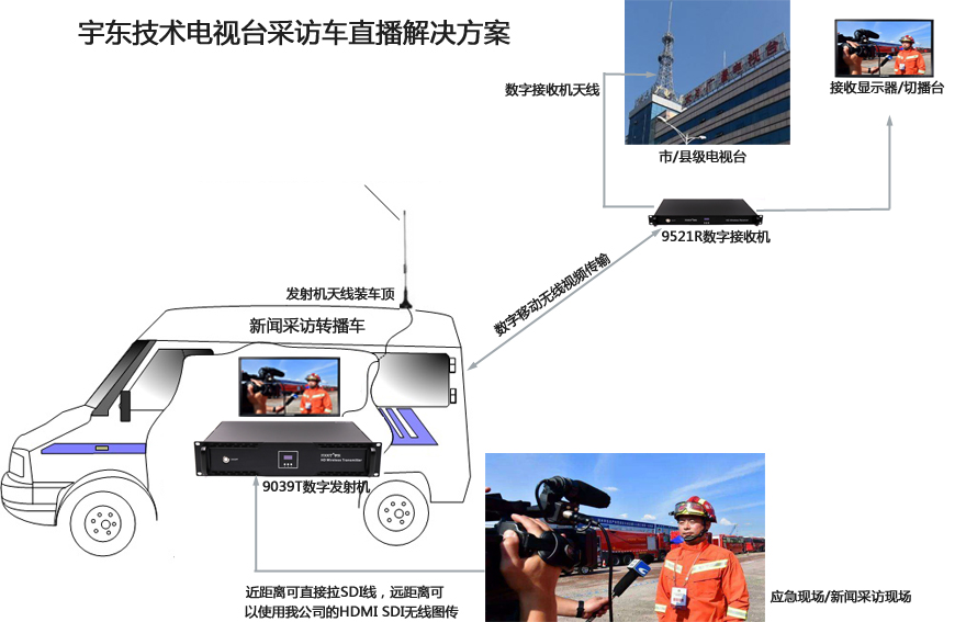 廣播 電視臺現(xiàn)場采訪車無線視頻信號遠距離傳輸,直接在車上安裝車載無線圖傳系統(tǒng),配合車載播出系統(tǒng)切換系統(tǒng),能實時將多路攝像頭信號,任意切換后通過無線發(fā)射,直接在電視臺播出機房接收到現(xiàn)場信號,再通過光纖鏈路,傳輸?shù)诫娨暟l(fā)射塔,通過開路電視發(fā)射出去,也可以通過有線電視線路傳輸。指揮中心或者老百姓就可以通過足不出戶,看到活動場面的實時畫面。