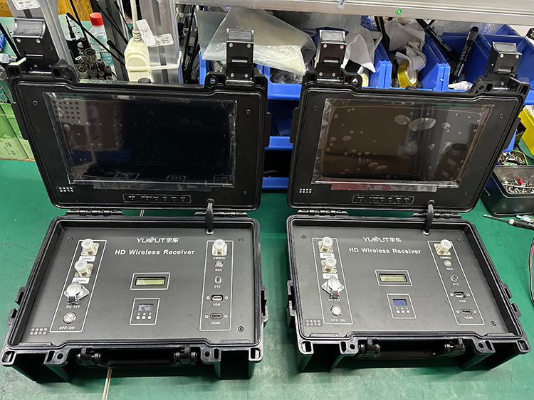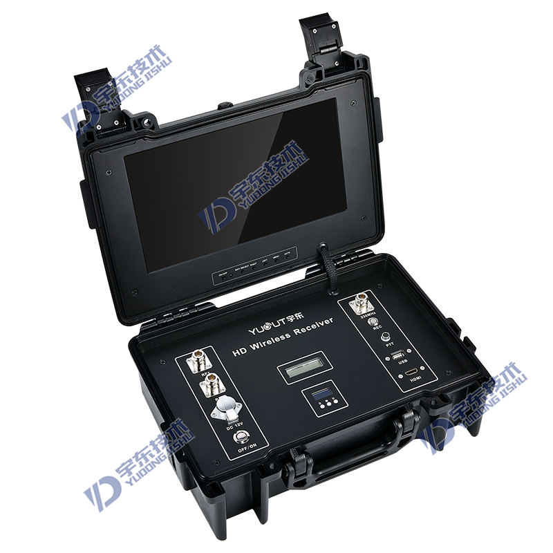 11、接收機(jī)為便攜式手提箱類型,支持插USB錄像,自帶顯示屏,可接收并顯示發(fā)射機(jī)視頻