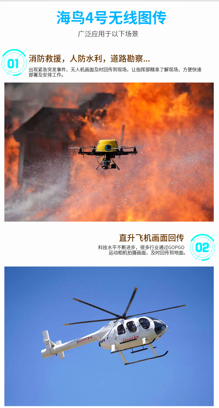 廣泛應(yīng)用于軍事偵察、邊防巡邏、公安技偵、航拍、空中測(cè)繪、電力巡查、鐵路搶險(xiǎn)、海事執(zhí)法、城管執(zhí)法、新聞密訪、衛(wèi)生防疫等或突發(fā)事件應(yīng)急指揮、無人車、無人船、特種機(jī)器人等領(lǐng)域。設(shè)備體積小可偽裝做密訪取證、空中作業(yè)圖傳、無人機(jī)無線圖像傳輸。